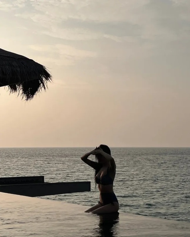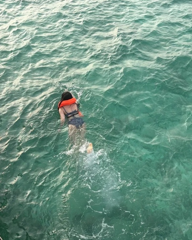 선미 소셜미디어선미의 라인은 수영장에서 더욱 두드러졌다. 그는 탄탄한 라인을 자랑했다. 또한 선미는 물속에서 스노클링을 즐겼다.