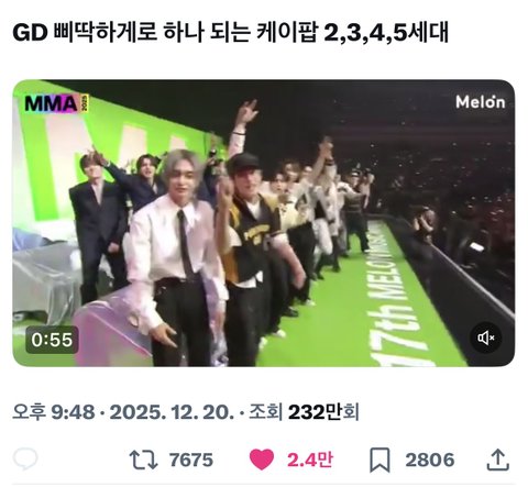 지디 무대 때 멜뮤 가수석 ㄹㅈㄷ..