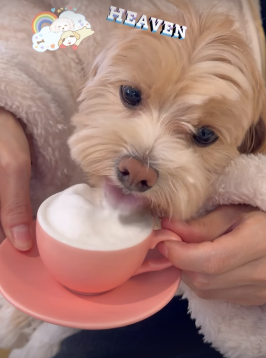 공개된 영상은 한예슬이 반려견과 함께 평온한 시간을 보내고 있는 모습. 한예슬의 반려견이 강아지 전용 음료인 이른바 ‘멍프라푸치노’를 앞에 두고 맛있게 먹고 있는 모습이 담겼다.
