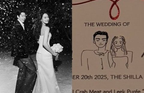 결혼식 메뉴판 역시 화제를 모았다. 메뉴판에는 신민아의 손그림과 김우빈의 손글씨가 더해져 아기자기하면서도 정성이 느껴지는 디자인을 완성했다.