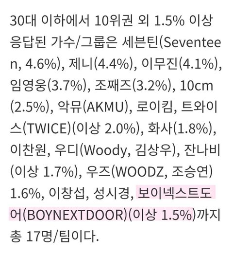 갤럽에 나온 남그룹 방탄 세븐틴 보넥도 끝임