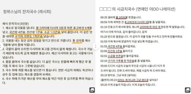 ‘더보기’ 속 레시피의 재료와 양까지 동일했습니다.