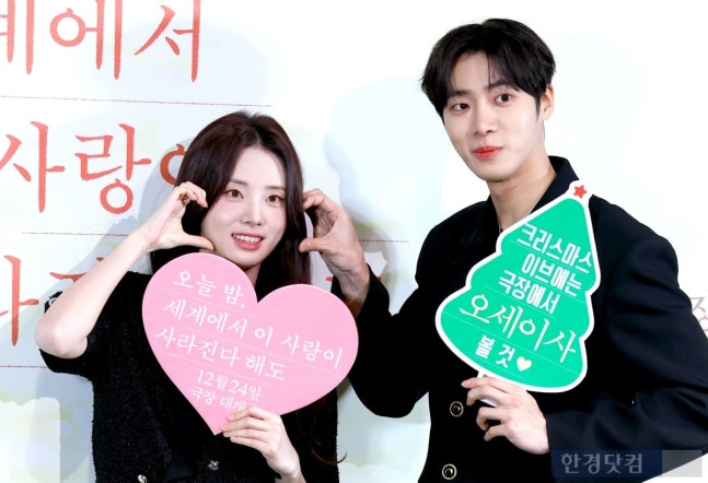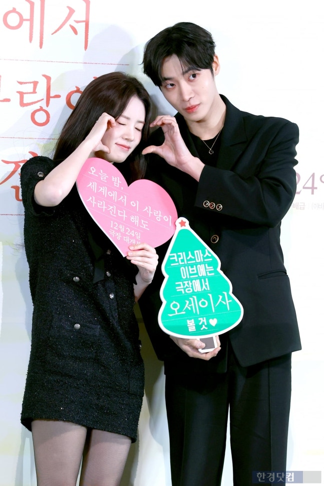 배우 신시아, 추영우가 22일 오후 서울 한강로 CGV용산아이파트몰에서 열린 영화 '오늘 밤, 세계에서 이 사랑이 사라진다 해도'(감독 김혜영, 제작 블루파이어 스튜디오) 언론 시사 및 기자간담회에 참석해 포토타임을 갖고 있다.