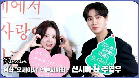 배우 신시아, 추영우가 22일 오후 서울 한강로 CGV용산아이파트몰에서 열린 영화 '오늘 밤, 세계에서 이 사랑이 사라진다 해도'(감독 김혜영, 제작 블루파이어 스튜디오) 언론 시사 및 기자간담회에 참석해 포토타임을 갖고 있다.