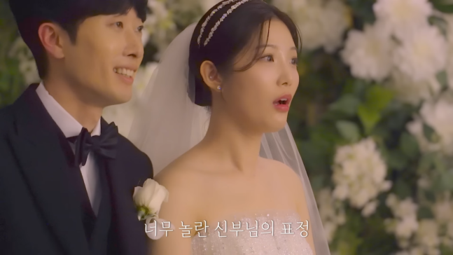 유튜브 채널 ‘남규리의 귤멍’ 캡처결혼식 당일, 신랑이 준비한 축하 영상이 상영되던 중 갑작스럽게 음향 문제가 생긴 듯 연출됐고, 당황한 신부 앞에 남규리가 등장해 씨야의 ‘결혼할까요’를 부르며 모습을 드러냈다. 예상치 못한 등장에 신부는 놀라움과 감동이 뒤섞인 표정으로 눈시울을 붉혔고, 하객들 역시 큰 환호로 화답했다.