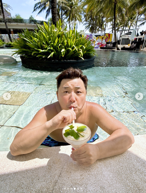 공개된 사진 속에서 원진서는 야자수가 있는 수영장을 배경으로 비키니를 입고 포즈를 취했다. 또 다른 사진에는 수영장에 들어가 칵테일을 마시는 윤정수의 모습이 담겼다.