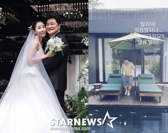 /사진=스타뉴스, 윤정수 SNS앞서 윤정수는 "내 신행 돌리도, 비야 멈춰라. 제발. 발리 발리야"라며 신혼여행 중 장대비가 내려 속상한 마음을 드러낸 바 있다. 함께 공개된 영상에는 비가 쏟아지는 발리의 모습이 담겨 눈길을 끌었다. 윤정수는 "실화인가? 비가 이렇게 오다니"라고 설명을 덧붙였다. 이에 네티즌들은 "우기철에 오셨어요. 내일은 맑을 거예요", "금방 그칠 거예요"라며 응원의 댓글을 남겼다.