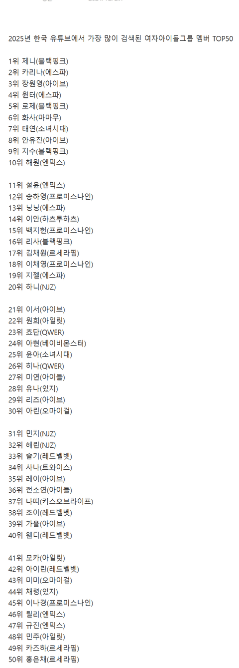 배우 : 고윤정 노윤서 노정의 가수 : 아이유 제니 장원영 카리나 윈터