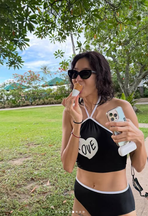 공개된 사진 속 유이는 몸매 라인이 고스란히 드러나는 수영복을 입고 간식을 입에 물고 있다. 가장 눈길을 끄는 것은 단연 그의 탄탄한 바디 라인이다. 꾸준한 웨이트 트레이닝으로 다져진 듯한 선명한 근육 라인이 감탄을 자아낸다.