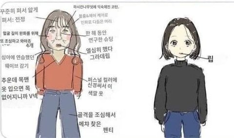 솔까 오른쪽처럼생기면 진한화장 하면 못생겨져서 쌩얼이났기때문에 진하게 안하고도 잘되는법 연구 ㅈㄴ 해야되는데 남돌이랑사귀고싶어서 왼쪽처럼 ㅈㄴ 연구하고