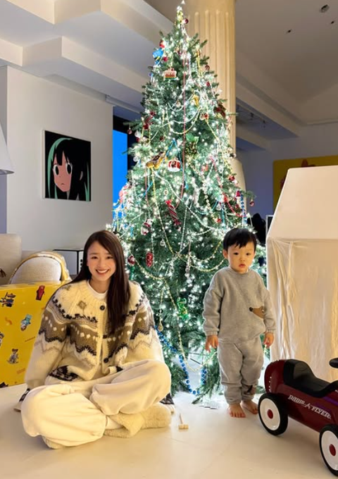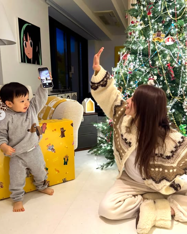 손연재는 24일 자신의 SNS에 “우리 집 크리스마스”라는 글과 함께 여러 장의 사진을 게재했다. 공개된 사진 속 손연재는 대형 크리스마스 트리가 놓인 널찍한 거실에서 편안한 니트 차림으로 아들과 함께 시간을 보내고 있는 모습이다. 천장까지 닿을 듯한 대형 트리와 여유로운 공간감이 어우러진 인테리어가 시선을 끌었다.
