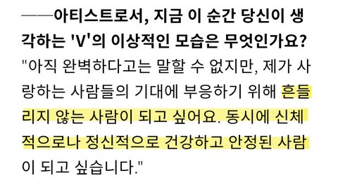 뷔 너무 좋음 최근 인터뷰 봐봐 정신적으로도 너무 바르고 건강함