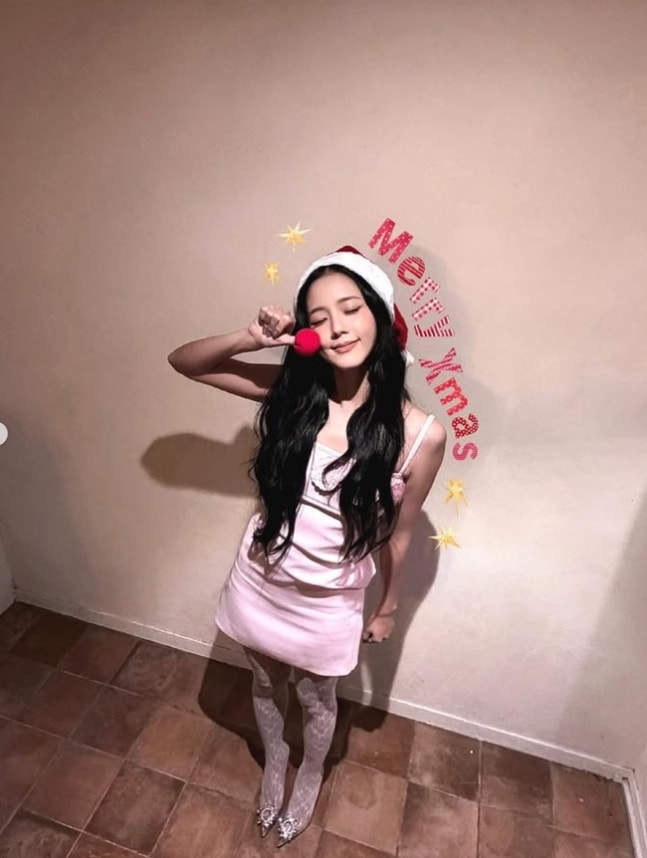 블랙핑크 지수 소셜미디어공개된 사진 속 지수는 산타 모자를 착용해 크리스마스 분위기를 물씬 풍겼다. 갸녀린 어깨 라인이 드러나는 연핑크빛 원피스는 지수의 청순한 미모를 부각시킨다.