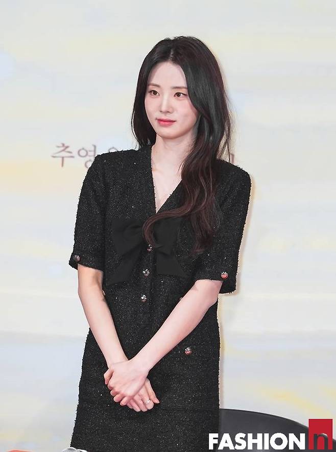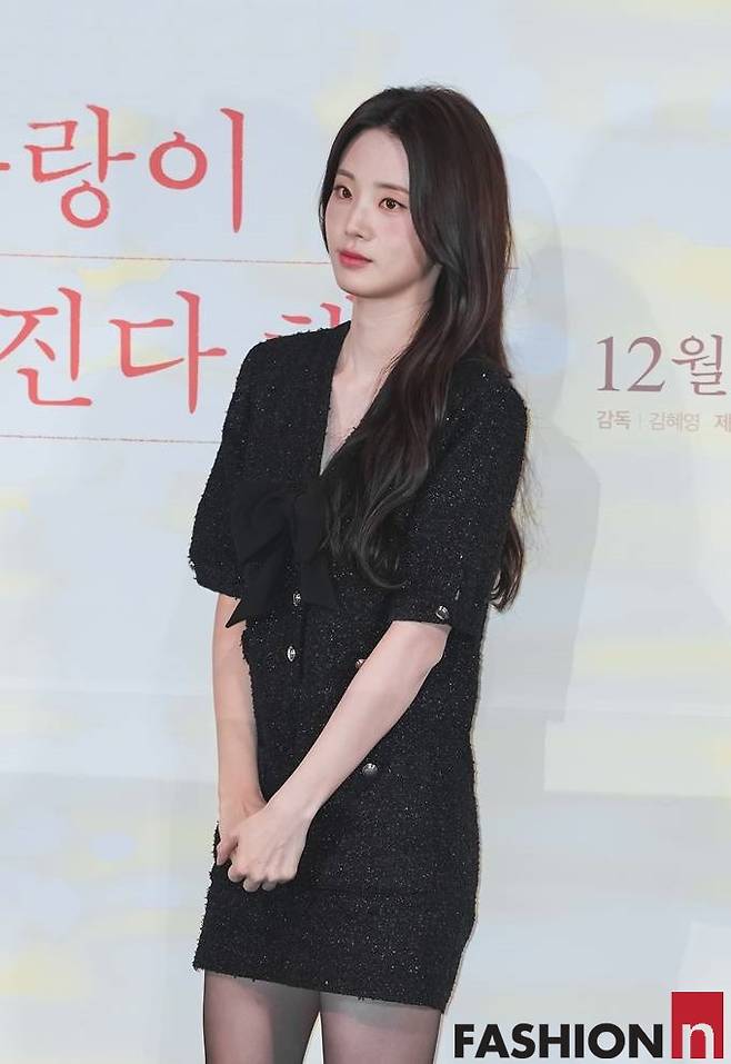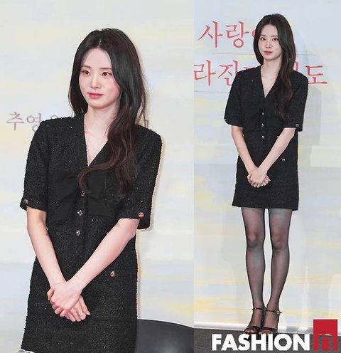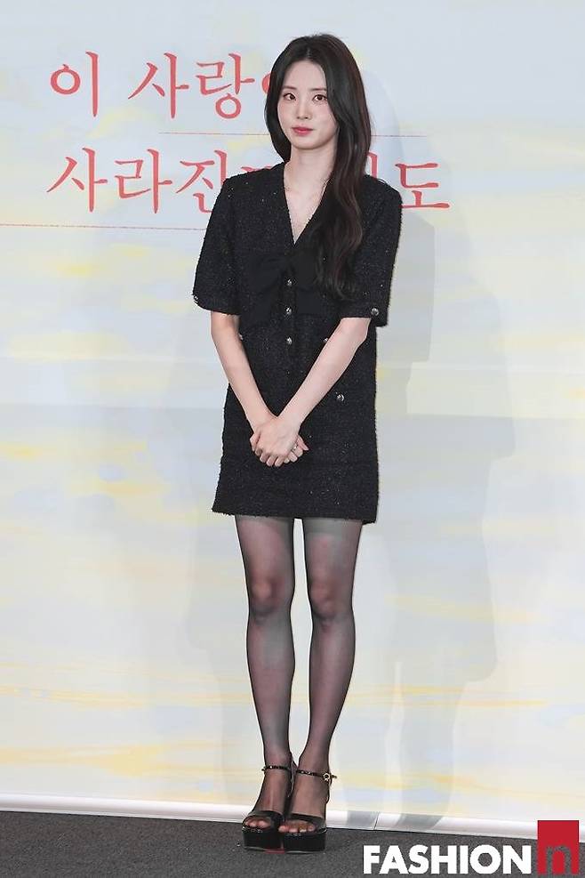 배우 신시아가 블랙 트위드 원피스룩으로 청순한 미모를 빛냈다.