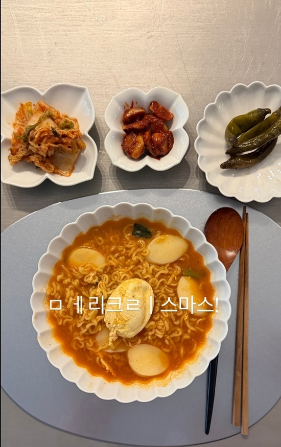 사진 속에는 라면과 반찬이 정갈하게 차려진 식탁이 담겼다. 눈길을 끈 건 라면의 양이었다. 한 그릇에 그친 식사가 아니라, 무려 세 봉지가 준비된 모습이었다.