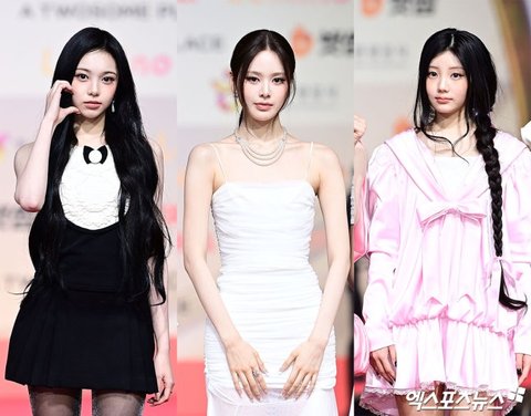 이날 레드카펫 행사에 참석한 하츠투하츠(Hearts2Hearts) 이안, 이즈나(izna) 방지민, 아일릿(ILLIT) 원희가 포토타임을 갖고 있다.