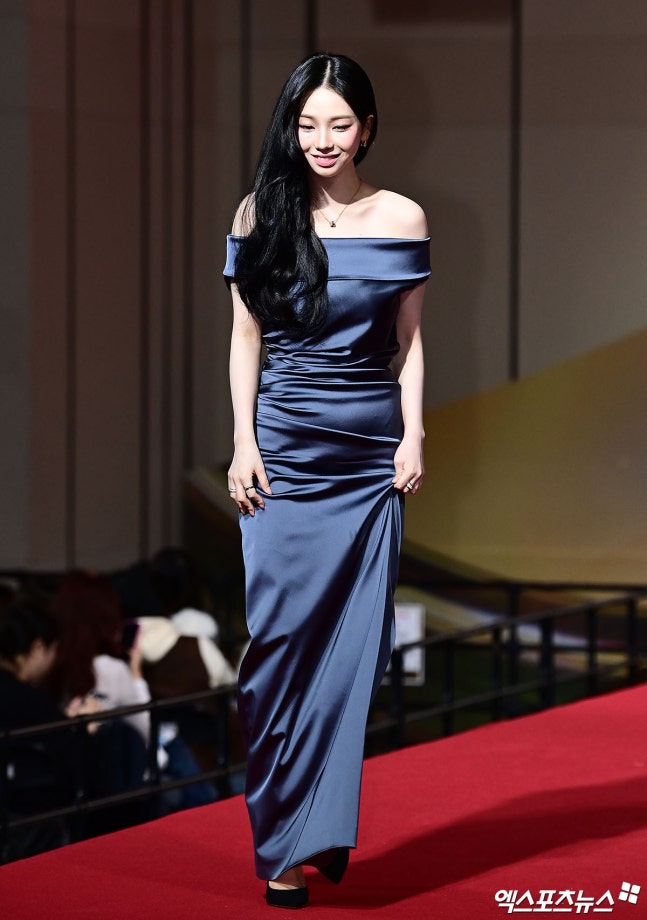 이날 레드카펫 행사에 참석한 아이브(IVE) 장원영, 에스파(aespa) 카리나, 엔믹스(NMIXX) 설윤이 포토타임을 갖고 있다.