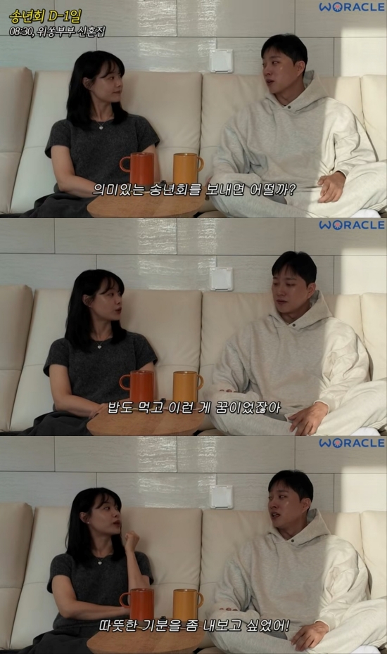 영상 속 박위는 송지은에게 "의미 있는 송년회를 보내면 어떨까?"라고 제안했다.