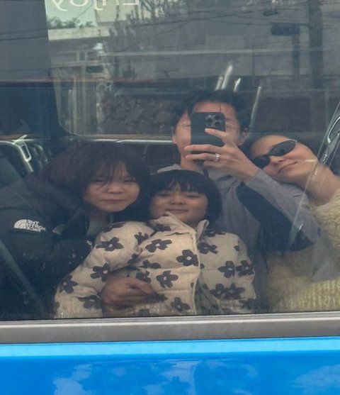 또 다른 사진에서는 아이들과 더욱 밀착한 채 포즈를 취한 김나영의 모습이 담겼다. 김나영의 모습을 찍는 마이큐의 모습도 창문으로 엿보이며 다정한 분위기를 느끼게 했다.