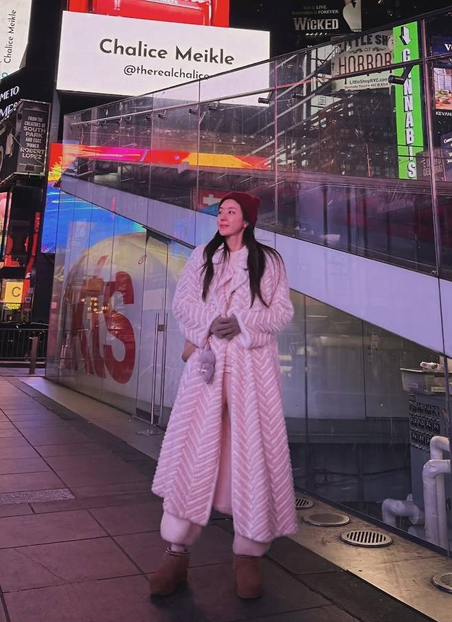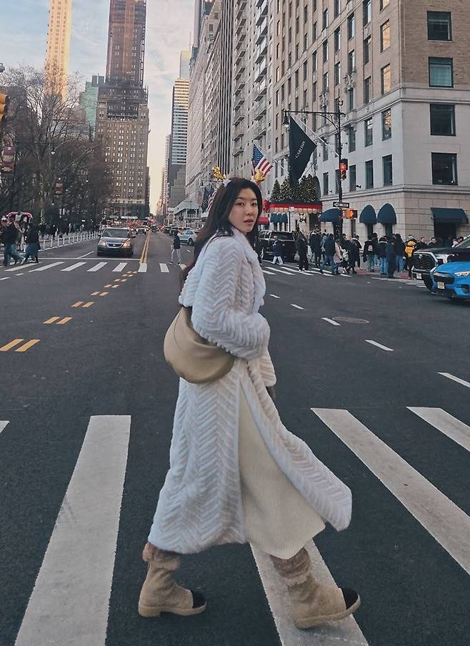 배우 박한별이 뉴욕에서 드라마틱한 헤링본 퍼 코트룩으로 로매틱한 홀리데이 스타일을 선보였다.