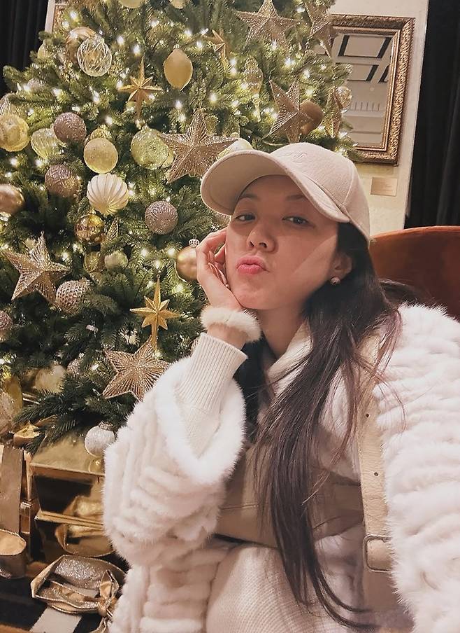 슈즈는 퍼 디테일이 더해진 베이지 톤 부츠를 매치해 실용성을 더했고, 크로스백과 니트 비니, 장갑 등 겨울 소품으로 포인트를 주며 연말 무드를 살렸다.
