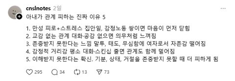 아냐아냐 저런 이유들이 있어도 할 때마다 좋아죽으면 말려도 해. 안좋으니까 안하고 싶은거야
