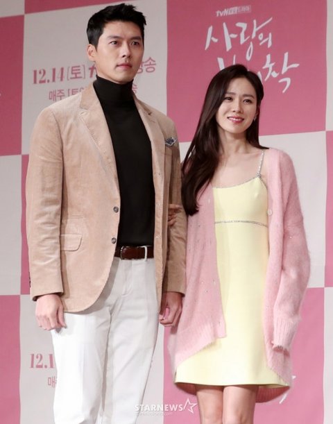 배우 현빈, 손예진이 9일 오후 서울 종로구 광화문 포시즌스호텔에서 진행된 tvN 새 토일드라마 '사랑의 불시착' 제작발표회에 참석해 포즈를 취하고 있다. 2019.12.09
