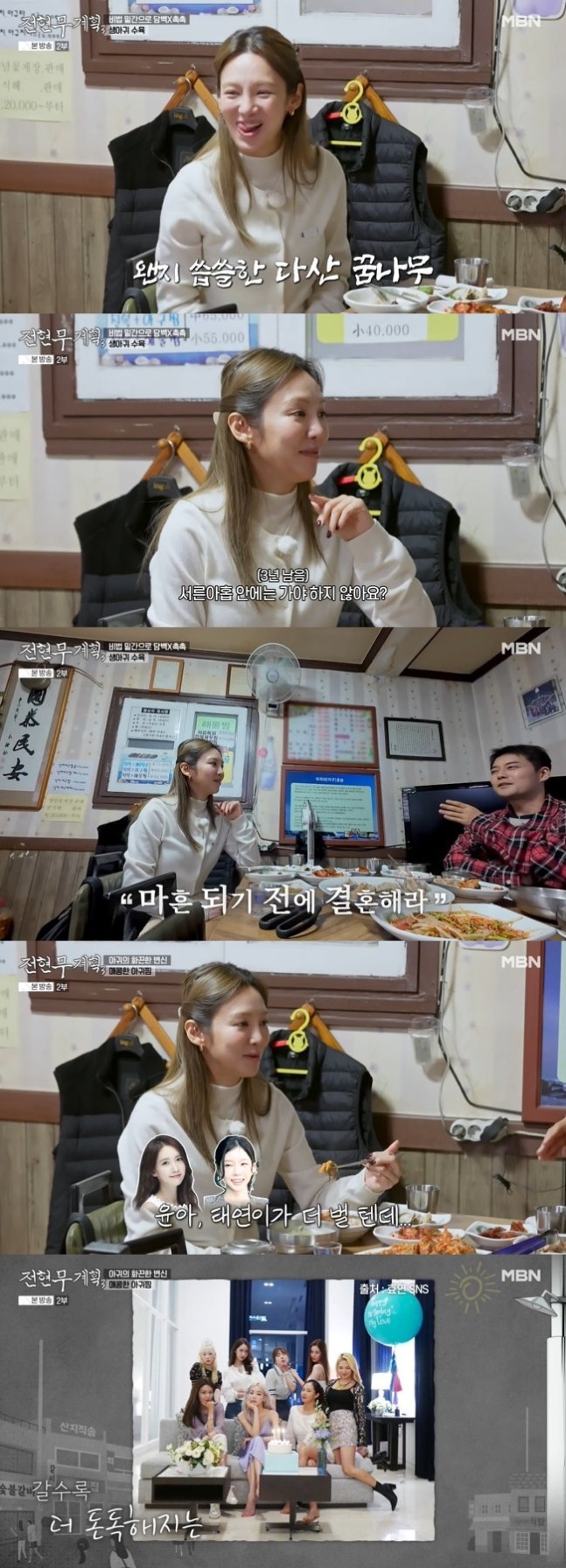 효연은 “저도 그 생각이 든다. 뭔가 앞자리가 바뀌면 뭔가 새로운 목표를 가질까 봐 무섭다. 누가 먼저 결혼하나 해볼까”라고 전현무에게 내기를 제안하면서도 “내가 왠지 이길 것 같은데”라고 예상했다.