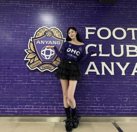 오하영이 1일 FC안양과 울산 HD의 하나은행 K리그1 2025 35라운드가 열린 안양종합운동장을 방문해 시축하는 모습. 사진=FC안양 SNS