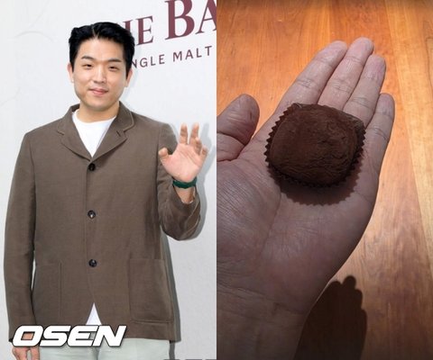 공개된 사진 속에는 안성재가 손바닥 위에 정통적인 두쫀쿠를 올려놓은 모습이 담겨 있다. 겉면에 초코 가루가 뿌려진 동그란 모양, 그리고 예쁜 포장지까지 사람들이 흔히 아는 두쫀쿠가 공개돼 눈길을 끌었다. 최근 안성재가 첫째 딸과 같이 만들었다가 파장을 일으킨 '두바이 딱딱 강정'과는 180도 다른 예쁜 비주얼을 자랑했다.