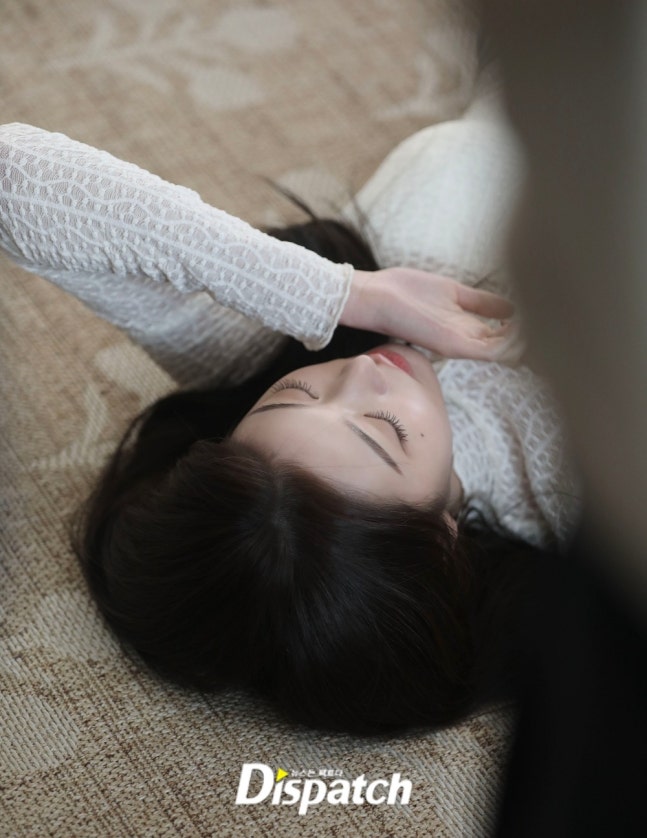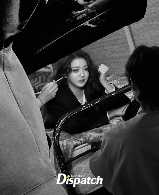 촬영 도중, 장원영의 시선이 아래쪽을 향했습니다.
