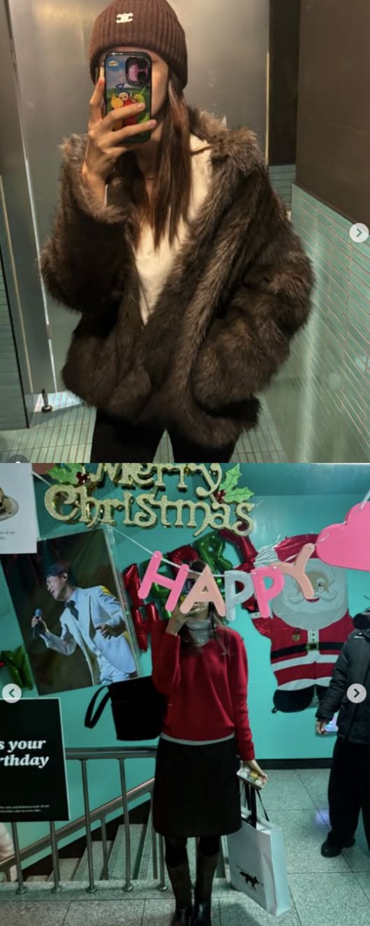 사진 속 서하얀은 퍼 자켓에 비니를 착용해 거울셀카를 찍고 있는 모습이 담겼다. 이어 크리스마스 분위기 속 포즈를 취한 그는 공연하는 남편을 영상으로 담으며 응원하고 있다.