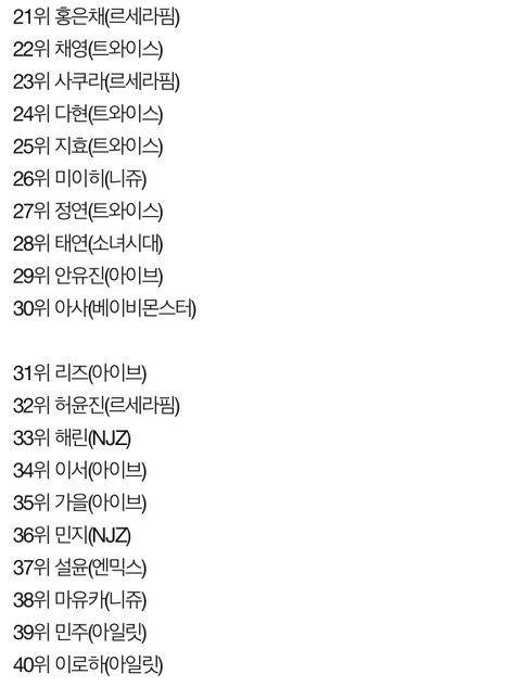 2025년 일본 유튜브에서 가장 많이 검색된 케이팝 여자 아이돌그룹 멤버 TOP50