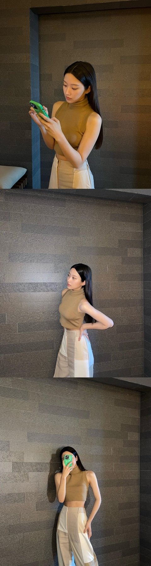 이번에 함께 공개된 사진에는 몸에 딱 달라붙는 크롭 니트를 입고 인증샷을 남기고 있는 문가영의 모습이 담겨 있다.