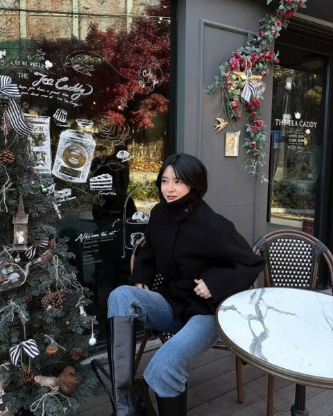 공개 된 사진 속 권나라는 겨울 장식으로 꾸며진 카페 야외 좌석에 앉아 블랙 코트와 데님 팬츠, 롱부츠를 매치한 채 자연스러운 포즈를 취하고 있다. 쇼윈도에 비친 크리스마스 오너먼트와 리스, 테이블 옆 미니 트리가 어우러지며 계절감을 살렸고 차분한 시선과 단정한 스타일링이 도회적인 분위기를 만든다.
