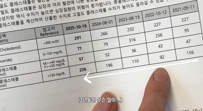 배우 엄태웅과 그의 아내이자 발레리나 윤혜진이 부부 모두 고지혈증 진단을 받았다고 밝혔다. 지난 25일 채널 '윤혜진의 What see TV'에는 '다이어트 간식 뭐 먹지? '덜 죄책감' 추천템 (고지혈증 판정 후 장보기)'이라는 영상이 업로드됐다. 공개된 영상 속 윤혜진과 엄태웅은 올해 건강검진 결과를 보며 놀라움을 금치 못했다. 윤혜진은 LDL 콜레스테롤 수치가 지난해 8월 183에서 177로 낮아졌지만, 엄태웅은 226이라는 수치가 나왔다.