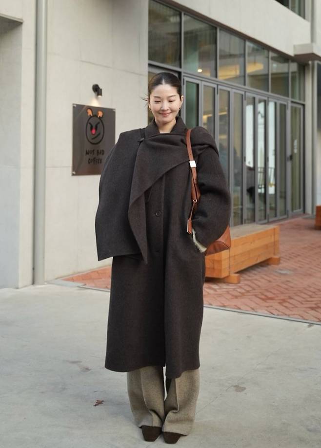 그룹 신화 전진의 아내 류이서가 코트 위에 망또를 걸친 케이프 코트룩으로 스타일리시한 윈터룩을 선보였다.