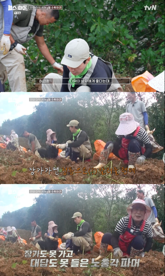 [OSEN=박근희 기자] '헬스파머’ 허경환이 더덕 수확 현장에서 어머니들의 매운맛 입담에 정신을 차리지 못했다.