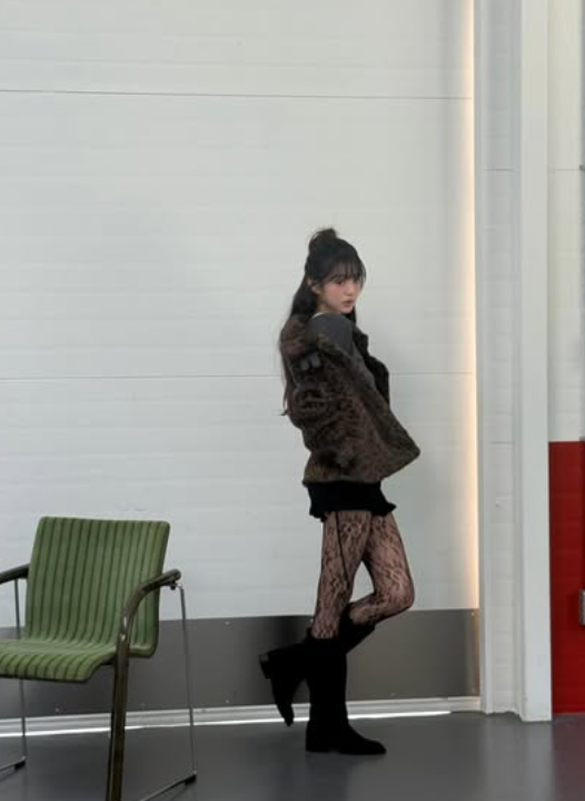 또 다른 사진에서는 호피무늬 재킷을 입고 실뜨기를 하는 모습으로 시선을 사로잡았다. 전신이 드러난 컷에서는 짧은 팬츠와 부츠 사이 호피 무늬 스타킹을 신고 섹시한 매력도 더했다.