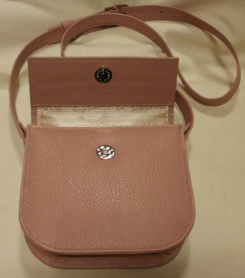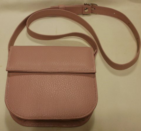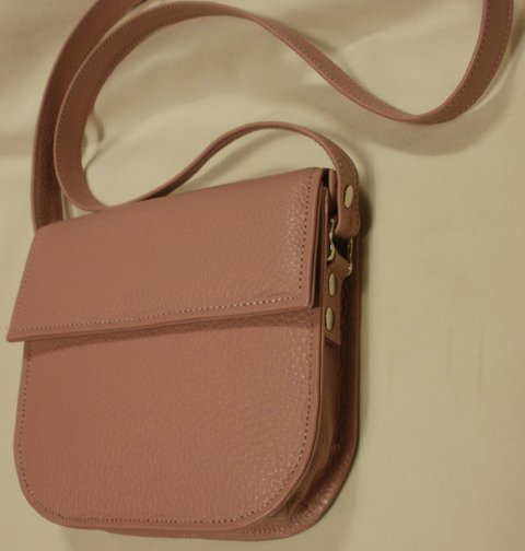핑크 컬러 부드러운 오플 패턴 엠보싱 가죽으로 심플하게 제작한 천연 가죽 미니 백(숄더백)입니다.(마디샤)