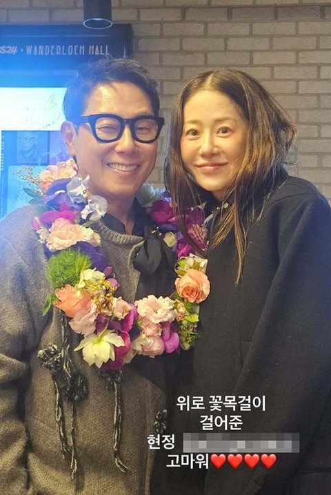 27일 윤종신은 "위로 꽃목걸이 걸어준 현정 고마워"라는 글과 함께 사진을 게재했다.