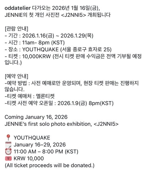 제니 본인 생일날 사진전 열어서 수익은 전액 기부한다함 제니 인스타 사진 계정 어느새부턴가 안해서 아쉬웠는데 개좋음...