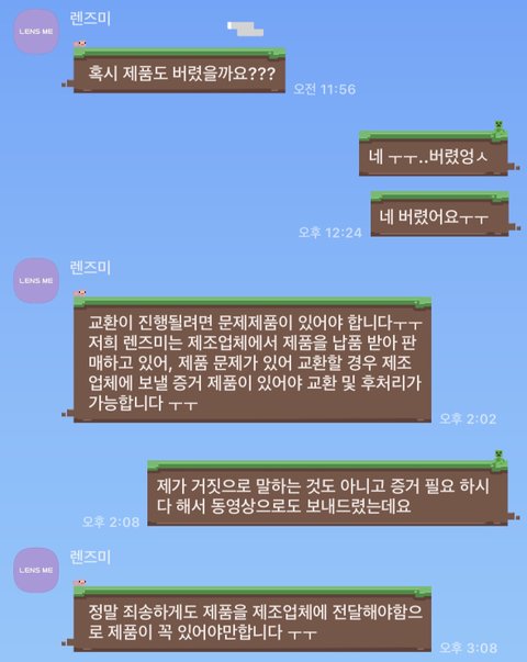 배달음식에도 문제 있으면 가게에서 다시 수거해가듯이 모든 불량품들은 버리지 말고 남겨놔야함 영상으로만 보내고 교환 받으면 너도나도 영상 보내고 하나 꽁짜로 가져갈텐데 ㅠㅠ