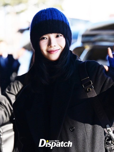 카리나는 비현실적인 미모로 시선을 모았다. 블랙 컬러의 코트와 털모자로 연출한 센스있는 스타일링도 돋보였다.