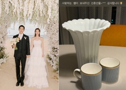 온주완은 12월 30일 공식 인스타그램을 통해 "사랑하는 쌤(선생님)이 보내주신 신혼 선물~ 감사합니다"고 밝혔다