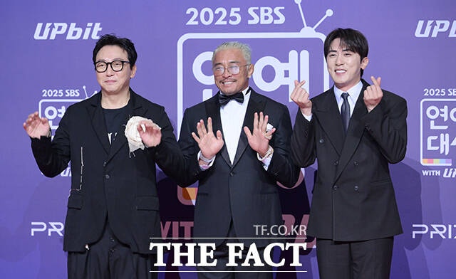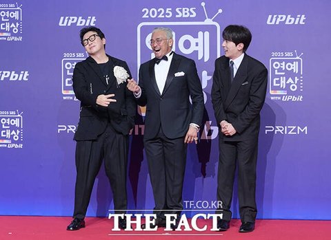 [더팩트ㅣ박헌우 기자] '한탕 프로젝트-마이턴' 탁재훈과 추성훈, 김원훈(왼쪽부터)이 30일 오후 서울 마포구 SBS 프리즘타워에서 열린 'SBS 연예대상 포토월에 참석해 포즈를 취하고 있다.