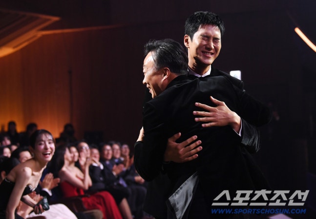 제46회 청룡영화상 시상식이 19일 여의도 KBS홀에서 열렸다. 신인 남우상을 수상한 안보현이 이성민과 포옹하며 감격스러워하고 있다. 정재근 기자 cjg@sportschosun.com/2025.11.19/