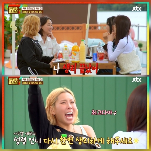 사진=당일배송 우리집잠시 정적이 흐른 뒤, 멤버들은 급히 웃음으로 상황을 수습했고 장영란은 “언니 다시 생리하게 해달라”며 농담을 던져 폭소를 자아냈다. 김성령 역시 웃음을 터뜨리며 “지금 나이까지 하면 큰일 난다”고 받아치며 맏언니다운 여유를 보였다.