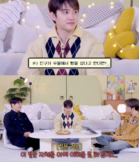 이 질문 듣자마자 선 긋는 도경수 ㅋㅋㅋㅋㅋㅋ