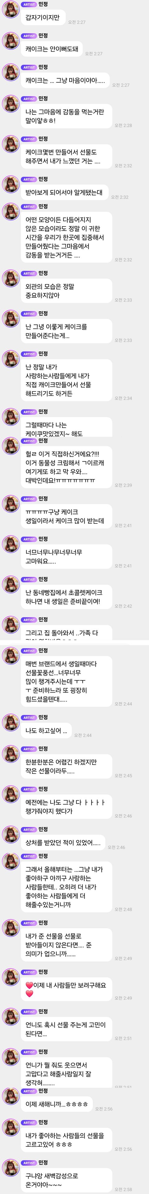 윈터는 원래 주변에 선물 많이 해왔음 스텝들 댄서들 인스스에 윈터한테 받은 선물 올린 분들 많았고 예전 스우파2였나 메가미션 참여했을때 60명 가까이 되는 참가자분들에게 직접 다 선물도 나눠주고
